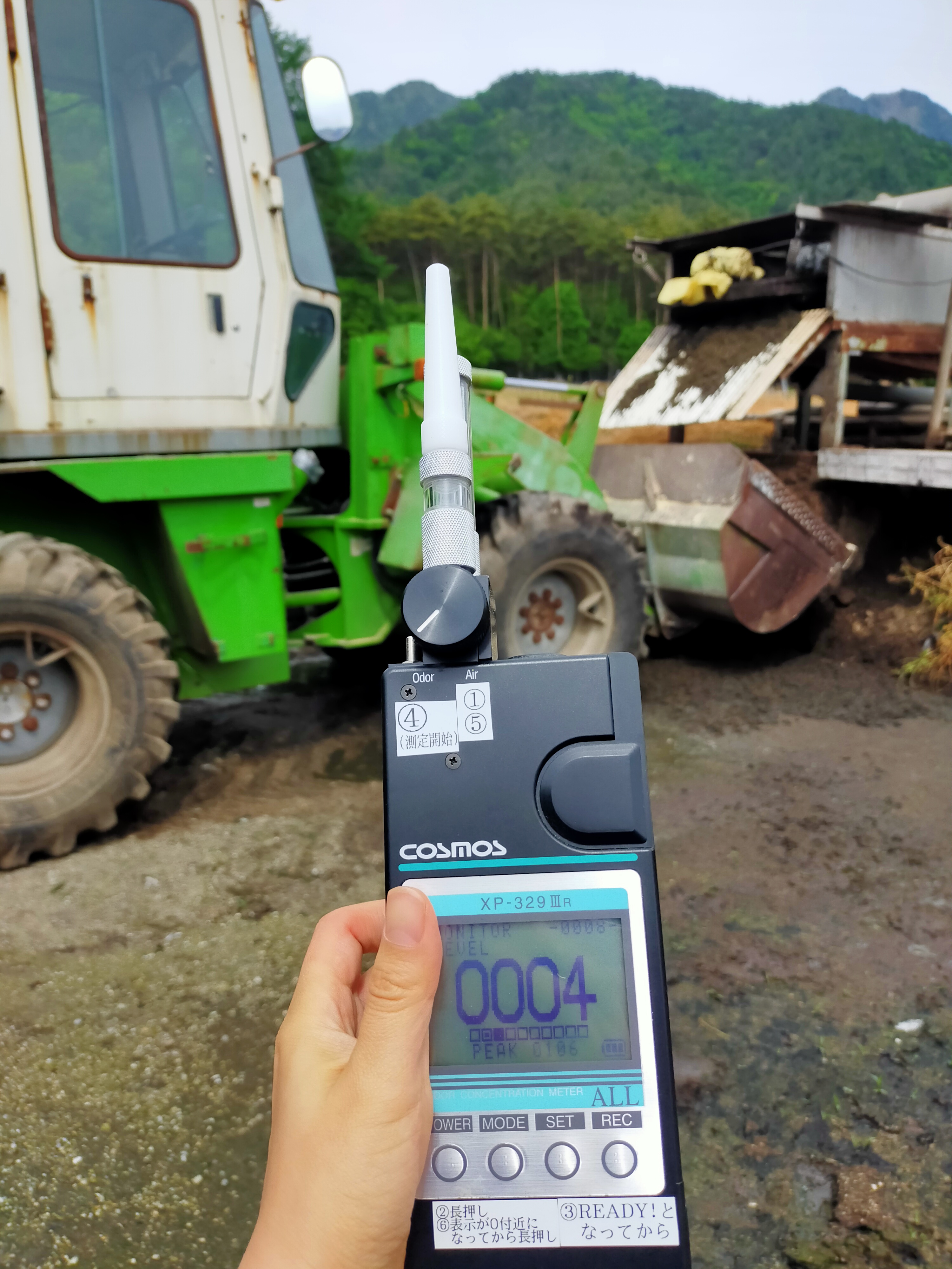 サークルコンポの臭気を測定しています。動いていないときはほとんど臭気0です