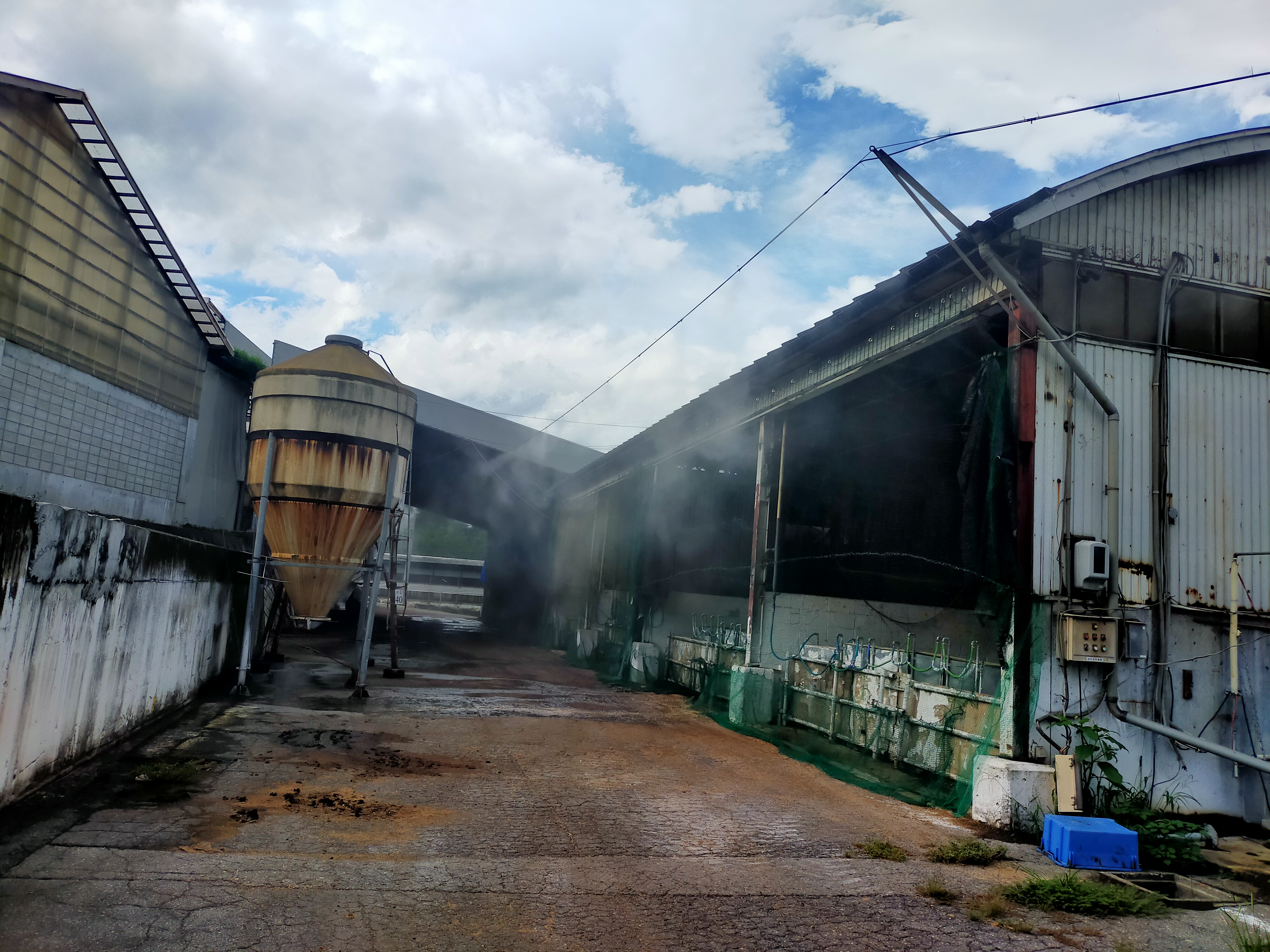 ウォーターカーテンのように使うことで、空気中の臭気物質を農場内に落とし、地域へ臭気が降りていくのを防ぎます。