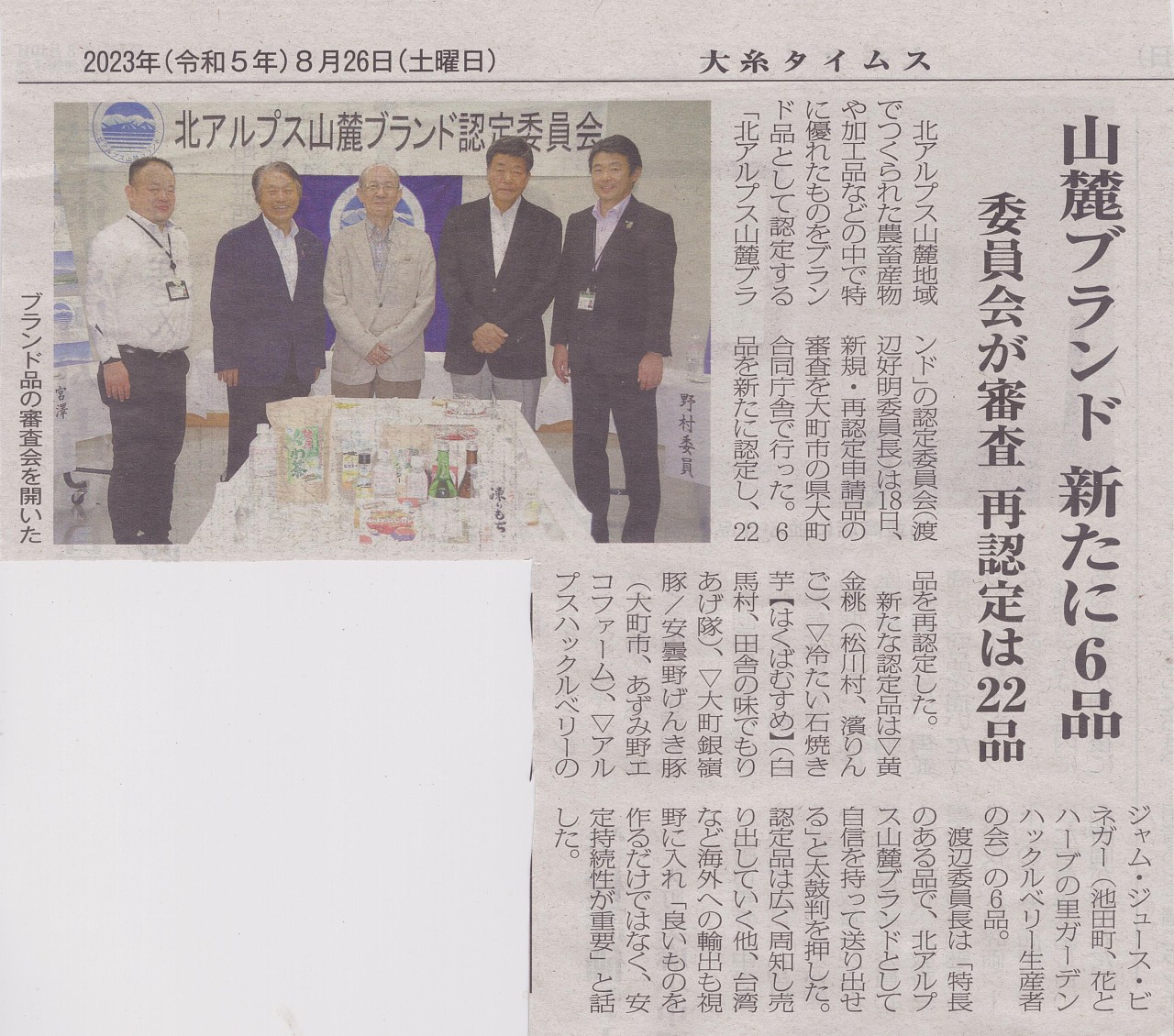 北アルプス山麓ブランドは北アルプス山麓地域の中で特に優れた商品をブランド品として認定する制度です。
